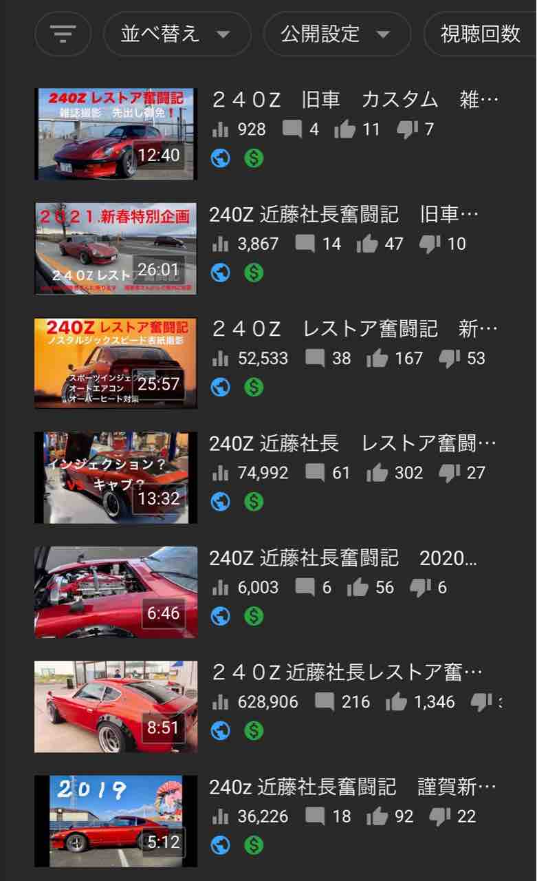 °ø¤ß¤Ë¡¢º£¡¢¤ä¤Ã¤Æ¤ë¼Ö·Ï¤ÎYouTube¡¢240Z¥ì¥¹¥È¥¢Ê³Æ®µ¤Î¹¹ð¼ýÆþ¤Ï¡¢Ëè·î¡¢¥°¡¼¥°¥ë¤«¤é¤Î¿¶¹þ¤¬¡¢£±Ëü±ß¡Á£³Ëü±ß¤°¤é¤¤¤Ç¤¹¡£